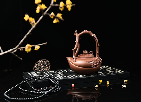 葛岳純父子皆擅長花貨的制作,其中家族代表作九龍至尊壺是由葛超美設計,其父親葛岳純制作完成,遠看壺型整體氣韻流暢,近看做工精美無暇,是父子合作的經典之作,現已注冊外觀專利和終身版權。后葛超美在其父親傳統技法的基礎上,吸收其藝術菁華,創造革新,制作出更為精致、富有立體感的九龍至尊壺,九龍盤壺戲珠,浮雕云騰致雨,精致于細發,大氣于天地,寓意天降祥瑞,國泰民安。